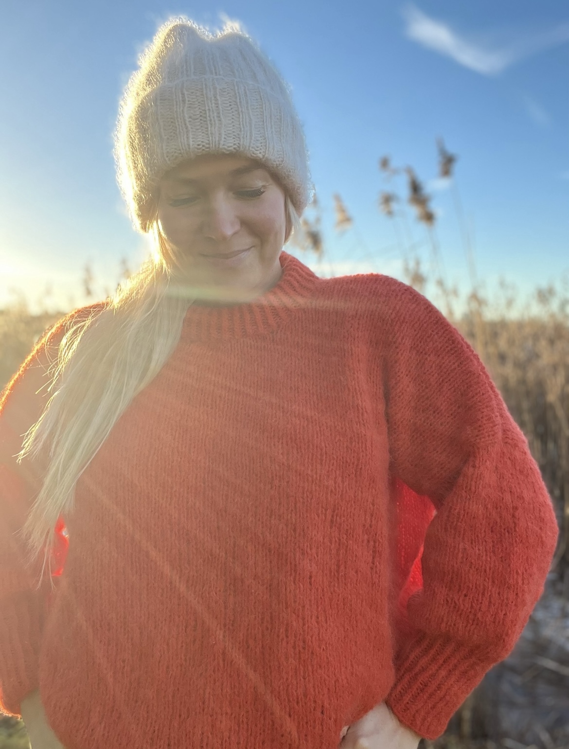 Novice Sweater suorastaan lentää puikoilta. Se neulotaan isoilla 6mm puikoilla kevyestä pörrölangasta ja ohje onkin hyvä valinta, jos etsit helppoa ja nopeaa neulottavaa. L-koon pusero painaa ainoastaan 350g.