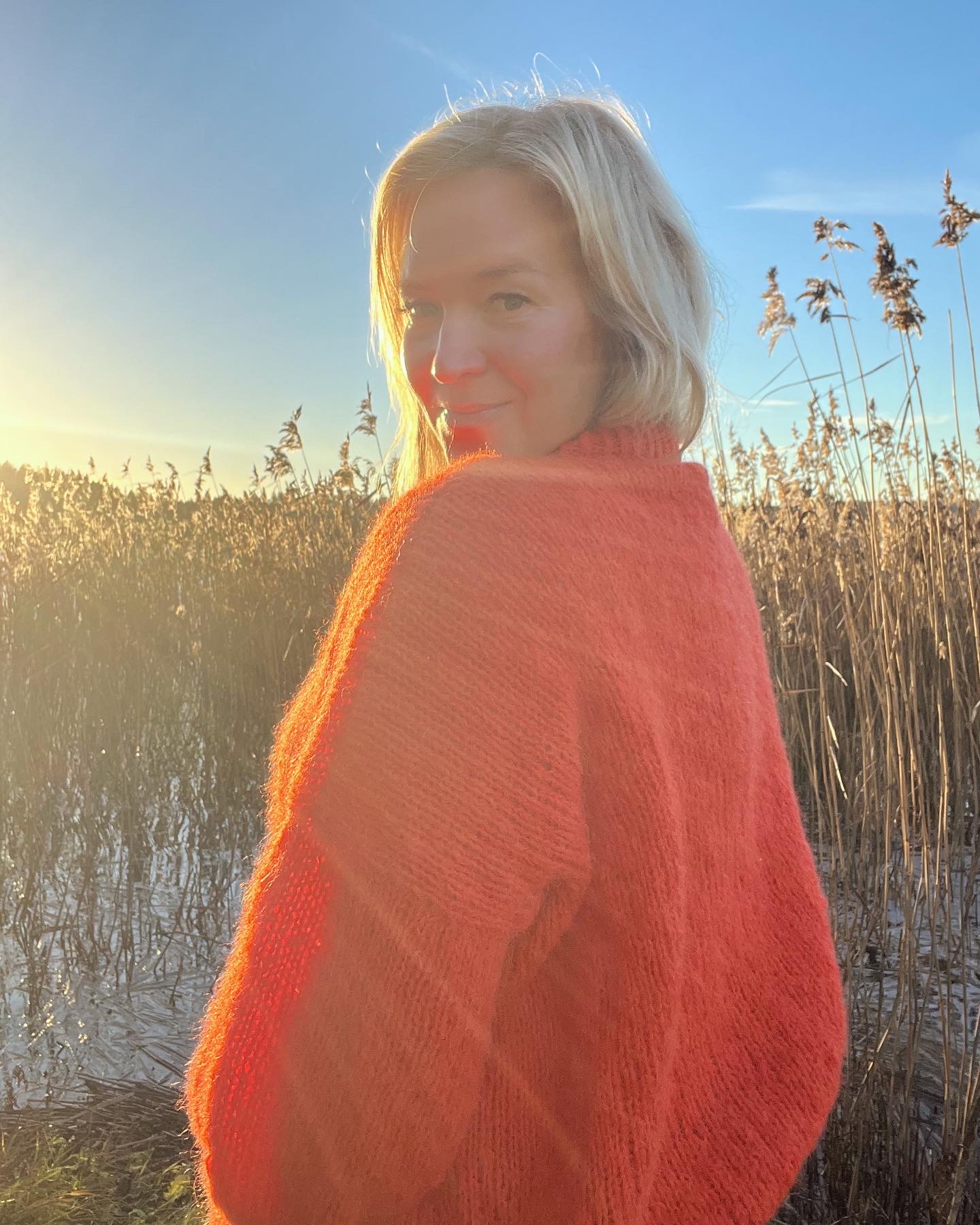 Magnolia -pusero neulotaan isoilla 8mm puikoilla ihanan pehmoisesta ja pörröisestä harjatusta alpakkalangasta.