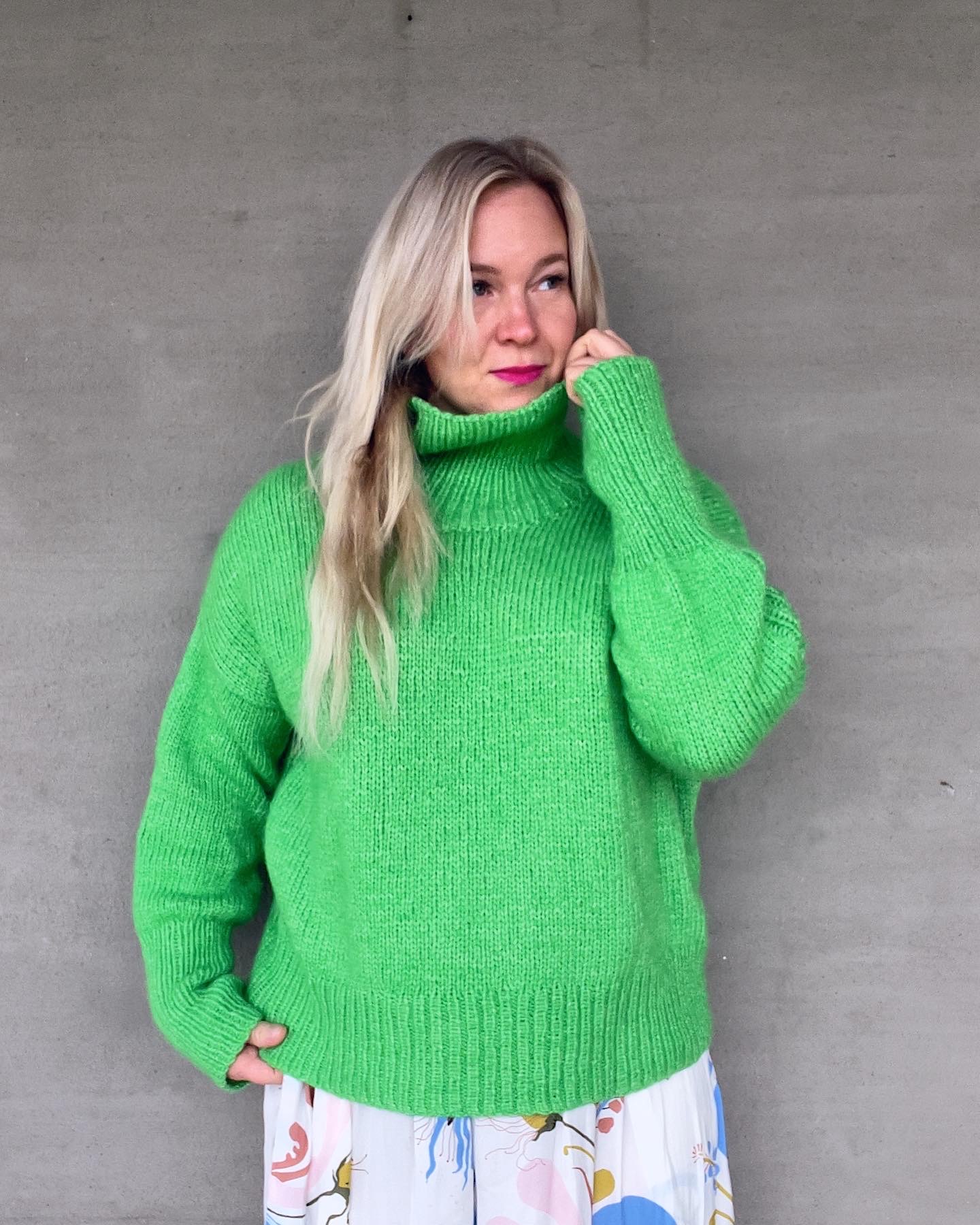 Poolaknits Alba on vaatekaapin klassikkoneule, jossa on korkea kaulus ja ajaton moderni malli. Albaan neulotaan lasketut olkapäät ja kauniit yksityiskohdat olkapäihin, hihoihin ja kylkiin. Extra pitkät hihojen resorit ryhdittävät tätä muuten rentoa ja väljää neuletta. Pehmeän paksusta langasta neulottuun Albaan on ihana kääriytyä.