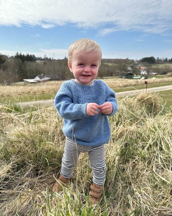 Vaaleasininen pusero on neulottu Sandnes Garnin Peer Gyntillä värissä 6324 Meleerattu sininen.