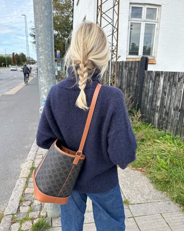 Chestnut Sweater on neulottu Hjelholts Uldspinderin ja Isagerin langoilla, jotka eivät valitettavasti kuulu valikoimaamme. Lähimpänä valikoimastamme on Peer Gynt värissä 6364 Tumma sininen.