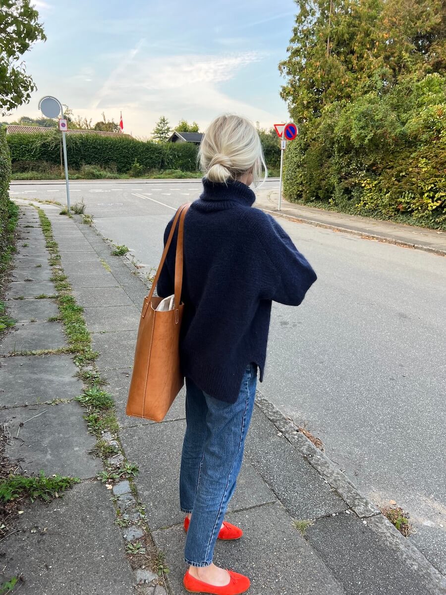 Chestnut Sweater on neulottu Hjelholts Uldspinderin ja Isagerin langoilla, jotka eivät valitettavasti kuulu valikoimaamme. Lähimpänä valikoimastamme on Peer Gynt värissä 6364 Tumma sininen.