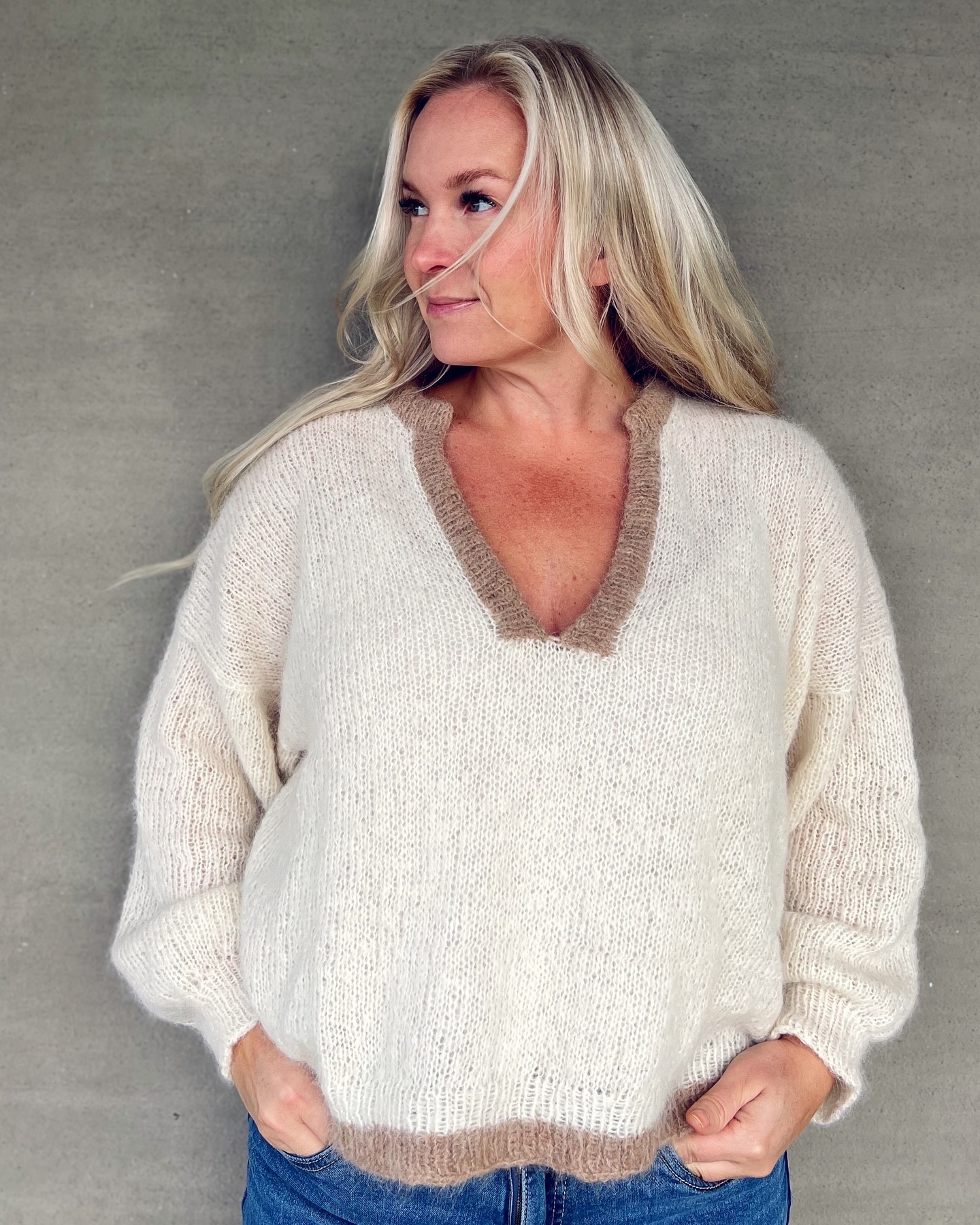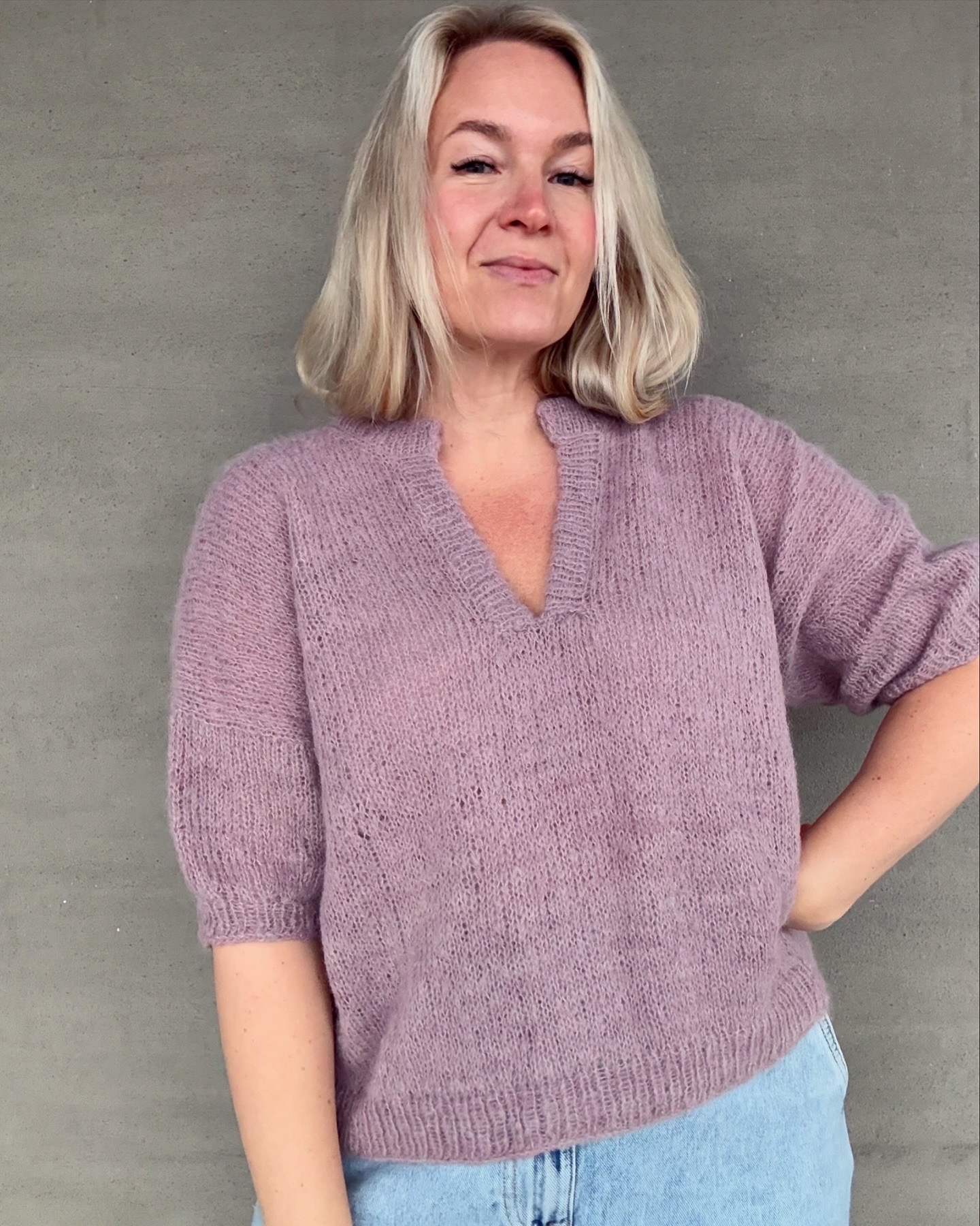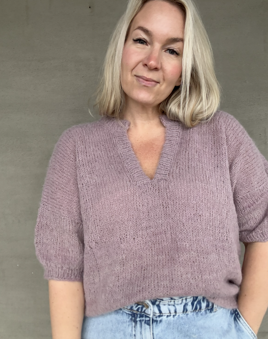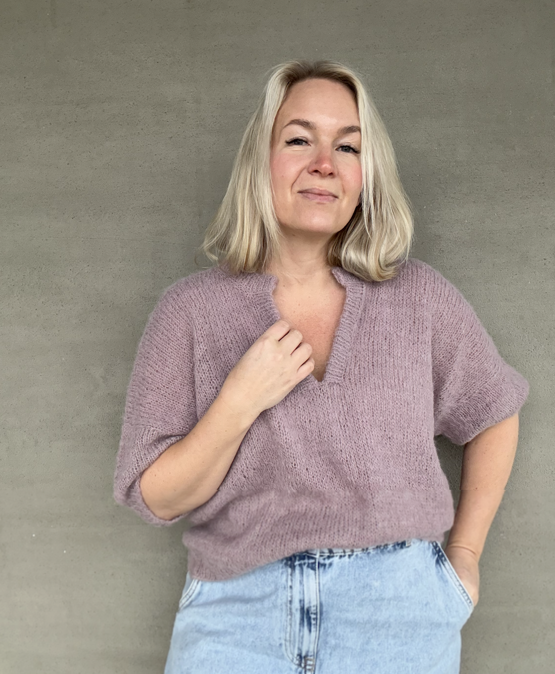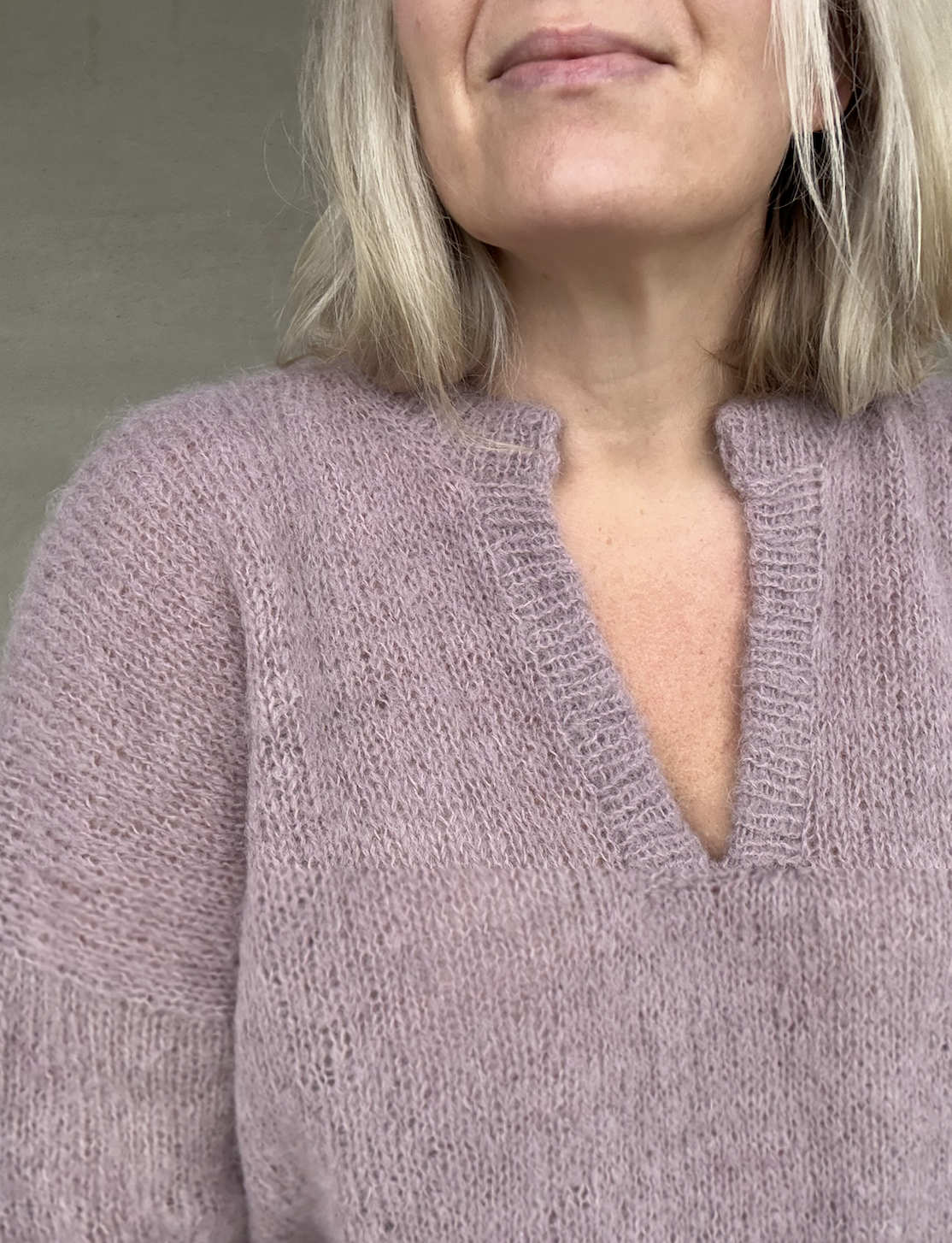 Poolaknits Clement on kevyt ja pehmoinen ylhäältä alas neulottu neule, jossa on v-pääntie ja jota koristavat napakat resorit. Tämä minimalistinen, kauniilla yksityiskohdilla höystetty neule on vaatekaapin todellinen luottoneule, joka sopii niin arkeen kuin juhlaan. Voit neuloa Clementin kaksinkertaisesta mohairista, pörröisestä suri alpakasta tai harjatusta alpakasta, yksivärisenä tai mallineuleen tapaan kahdella värillä. Ohjeesta löydät sekä lyhyt- että pitkähihaisen Clement-neuleen versiot sekä vaihtoehdon kahteen v-pääntien pituuteen.