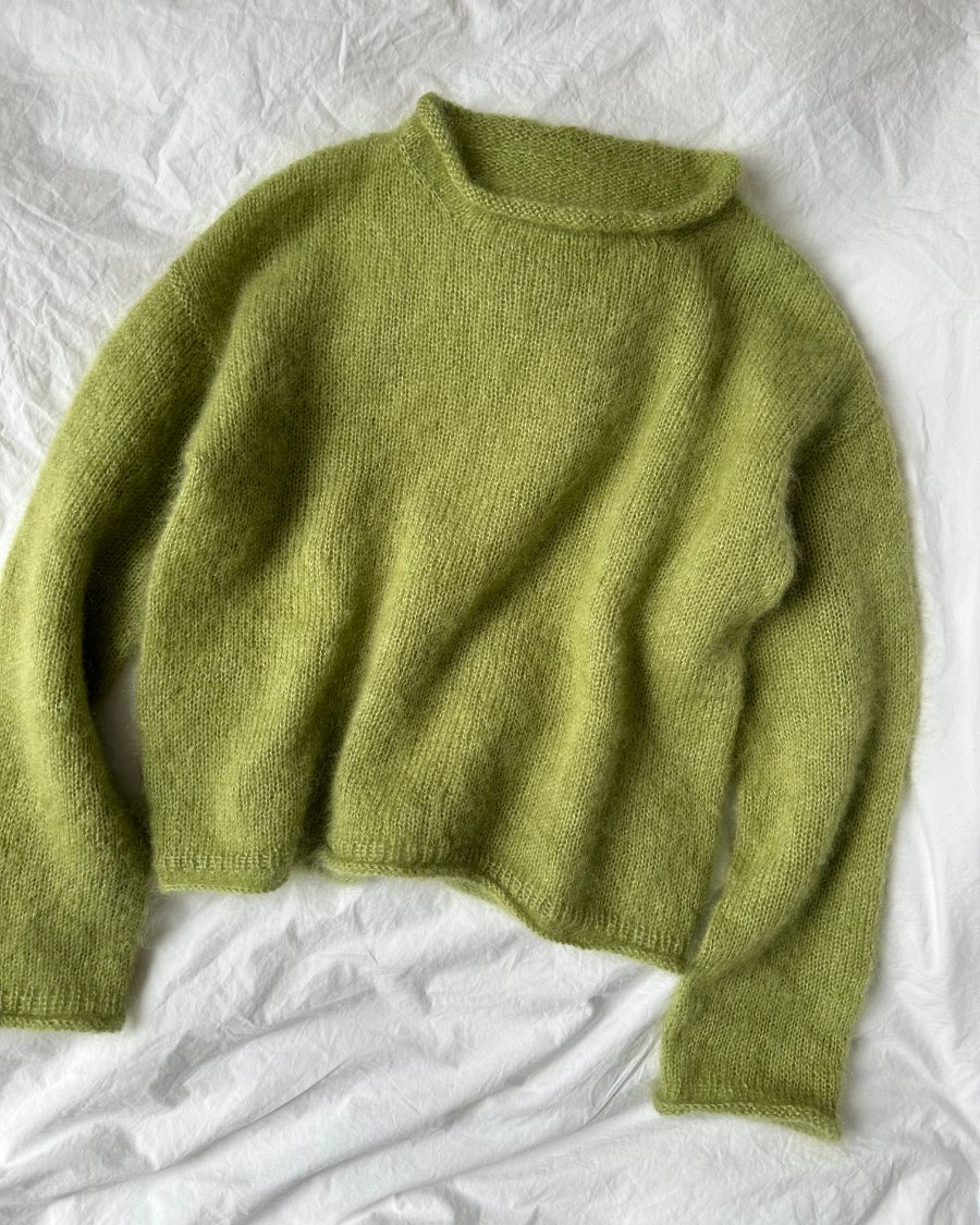Kuvien vihreä pusero on neulottu Isagerin langoilla, jotka eivät valitettavasti kuulu valikoimaamme. Lähimpänä valikoimastamme on Sandnes Garn Tynn Silk Mohair värissä 8733 kirkas vaaleanvihreä.