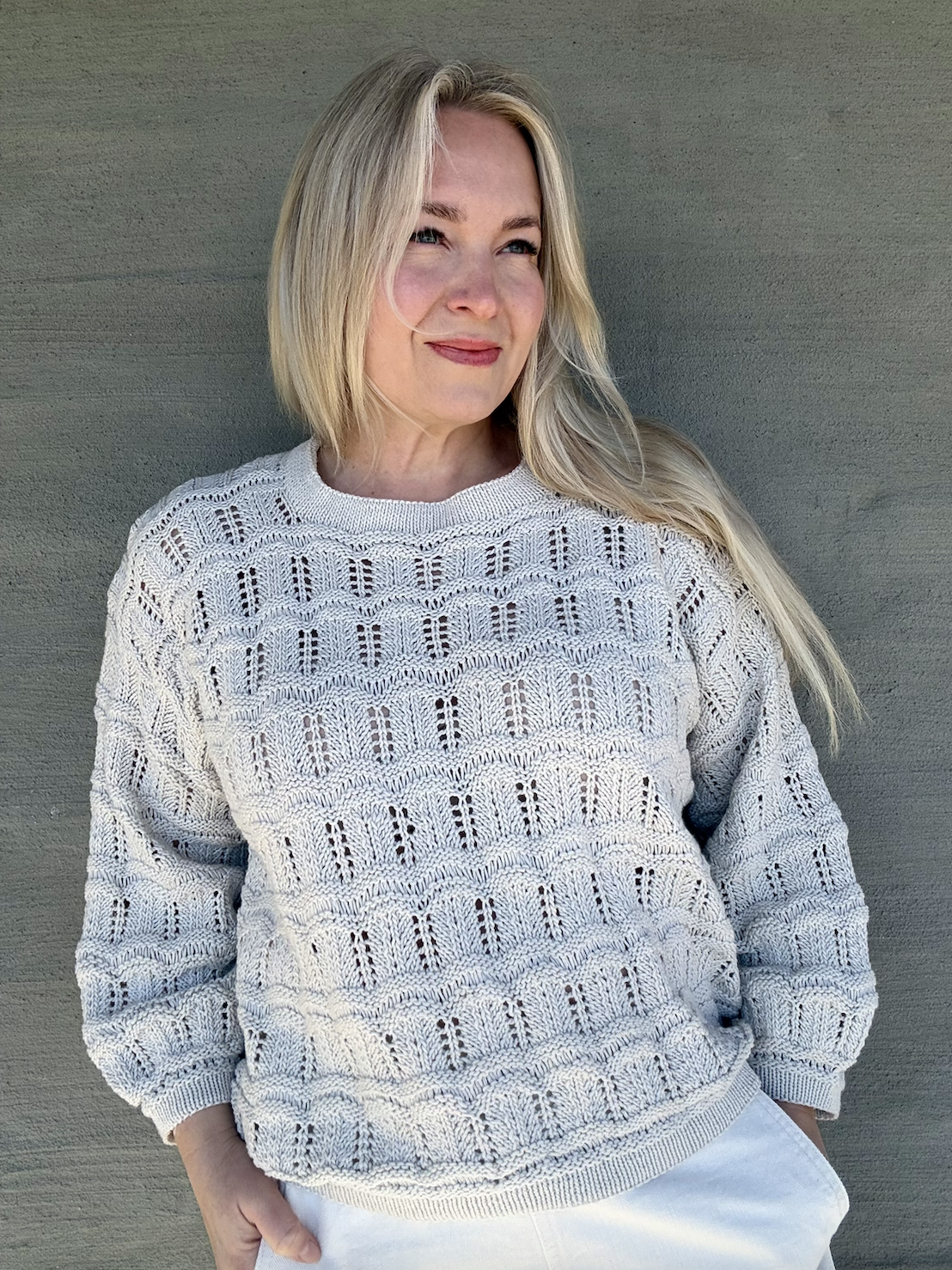 Paidan selkeä, toistuva “chevron” -pitsikuvio luo neuleeseen kauniin, aaltoilevan pinnan. Pudotettujen silmukoiden kerrokset taas tuovat neuleeseen rytmiä ja ilmavuutta – tämä neule sopiikin täydellisesti puettavaksi ympäri vuoden. Rento mitoitus, hieman pallomaiset hihat ja lasketut olkapäät takaavat kauniin, mutta tyylikkään ilmeen tälle lempineuleelle.