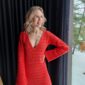 Punainen mekko on neulottu Sandnes Garn Line -langan värillä 4108.