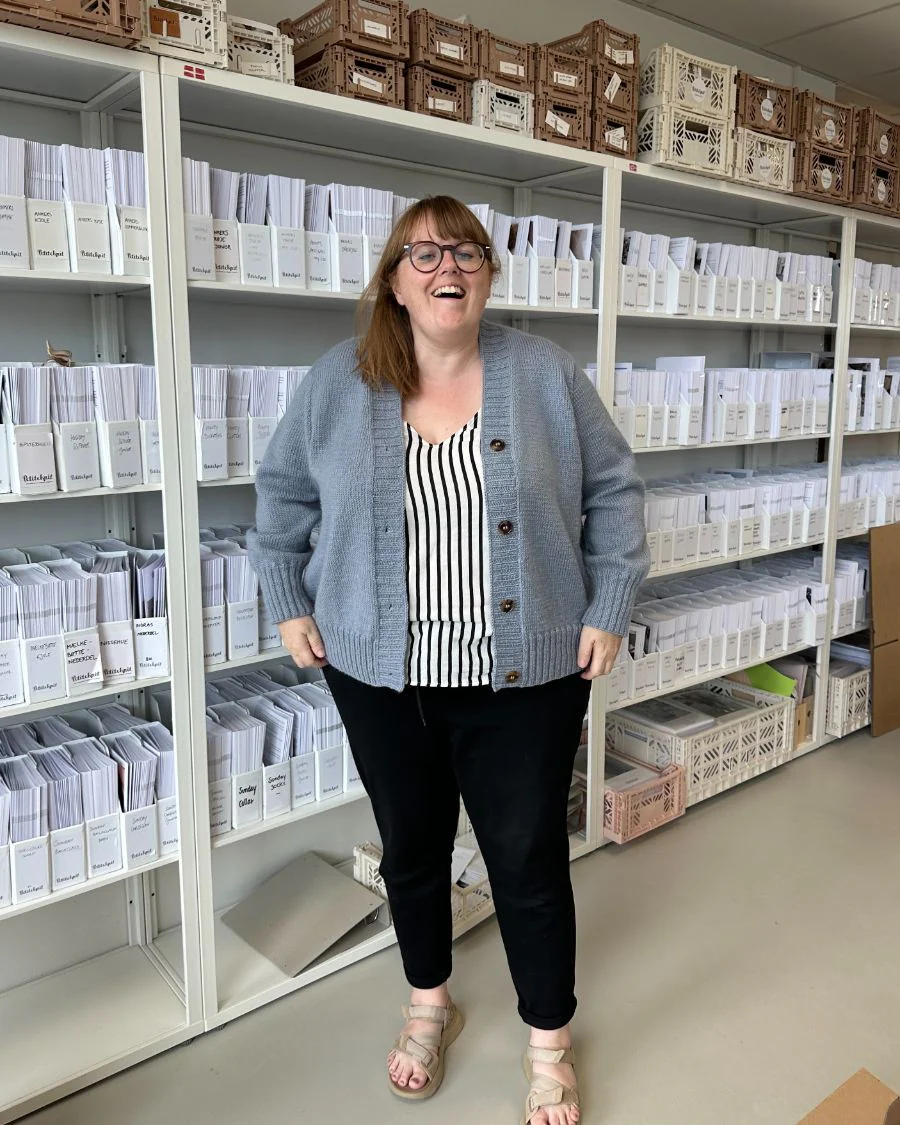 Eva Cardigan on neulottu Sandnes Garn Peer Gynt värillä 5591 PetiteKnit Night Sky.Eva Cardigan on neulottu Peer Gynt värillä 6050 PetiteKnit Above The Clouds. Väri on poistunut ja lähimpänä sitä valikoimasta on 6351 PetiteKnit September Sky.