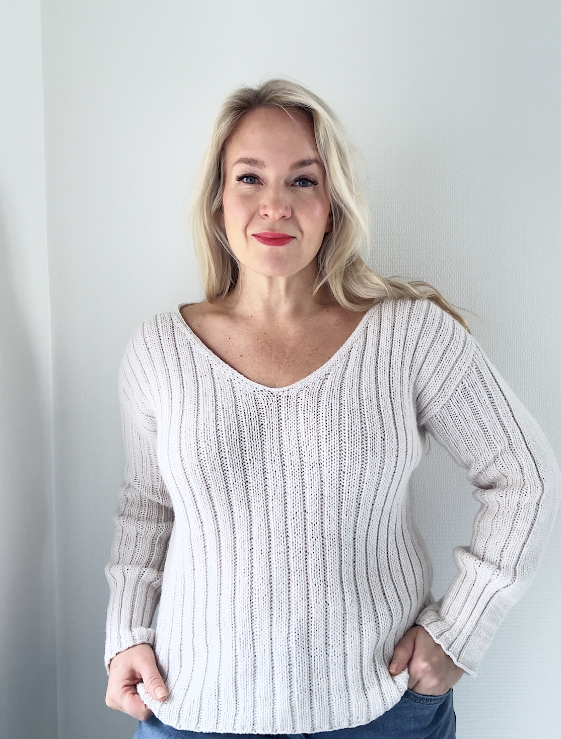 It’s a Keeper on elegantti, mutta rento neulepaita, jota rytmittää kaunis joustinneulepinta ja jossa on eleetön v-pääntie sekä kauniit satulaolkapäät. DK-vahvuisesta langasta neulottu paita on vaatekaapin luottoneule ja klassikko, jonka haluat pukea päälle kerta toisensa jälkeen. Olkapäille neulotaan kauniit leveät saumat sileää neuletta, joista työ aloitetaan ja jotka jatkuvat olkapäältä hihansuulle asti. Ylhäältä alas neulotun puseron helman ja hihojen pituutta on helppo säätää omaan makuun sopiviksi.