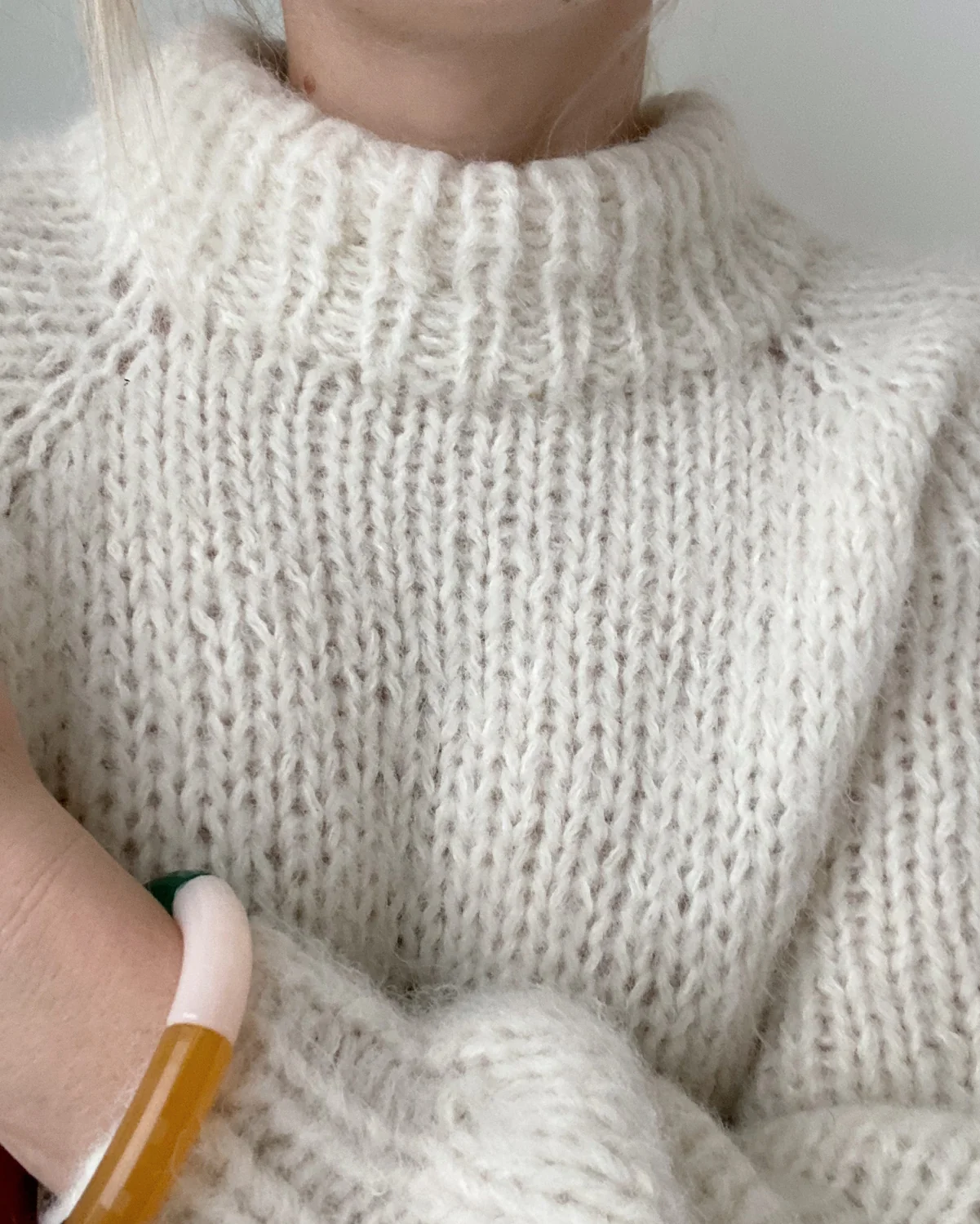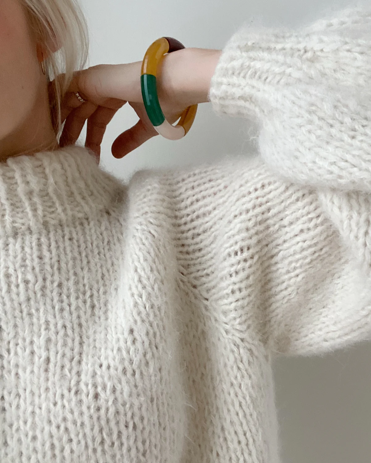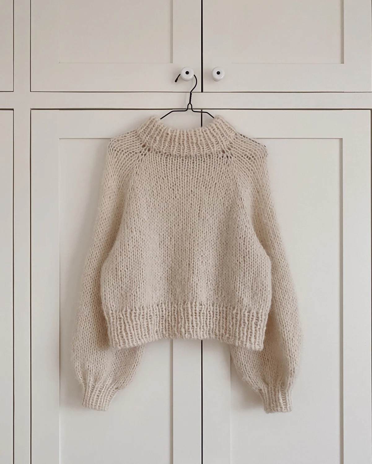 Kuvien mallikappale on neulottu Sandnes Garnin Børstet Alpakka langan värillä 1012 Luonnonvalkoinen.