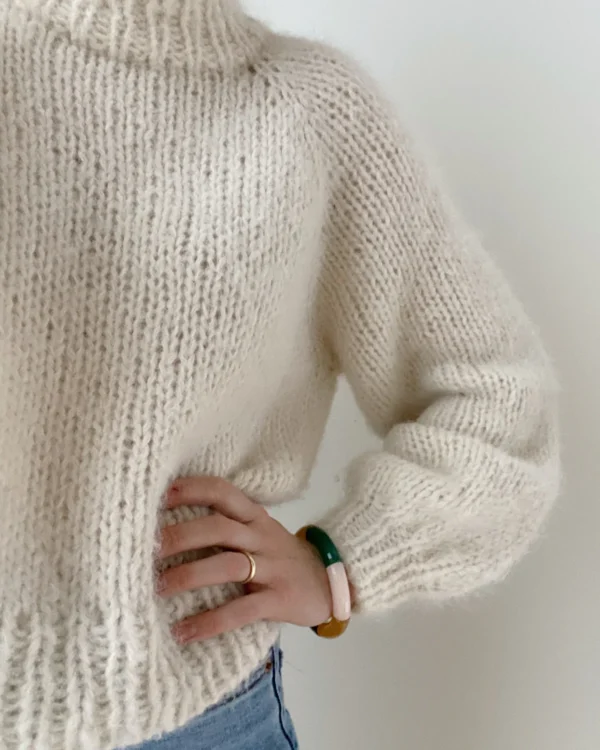 Louisiana Sweater on ihanan pehmeä pörröneule, joka suorastaan lentää puikoilta. Se neulotaan isoilla 8mm puikoilla ja ohje onkin hyvä valinta, jos etsit helppoa ja nopeaa neulottavaa.