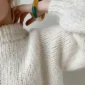 Pakettiin kuuluva lanka Sandnes Garnin Børstet Alpakka on pörröinen ja kevyt harjattu alpakkalanka. Lanka on hyvin pehmoista.