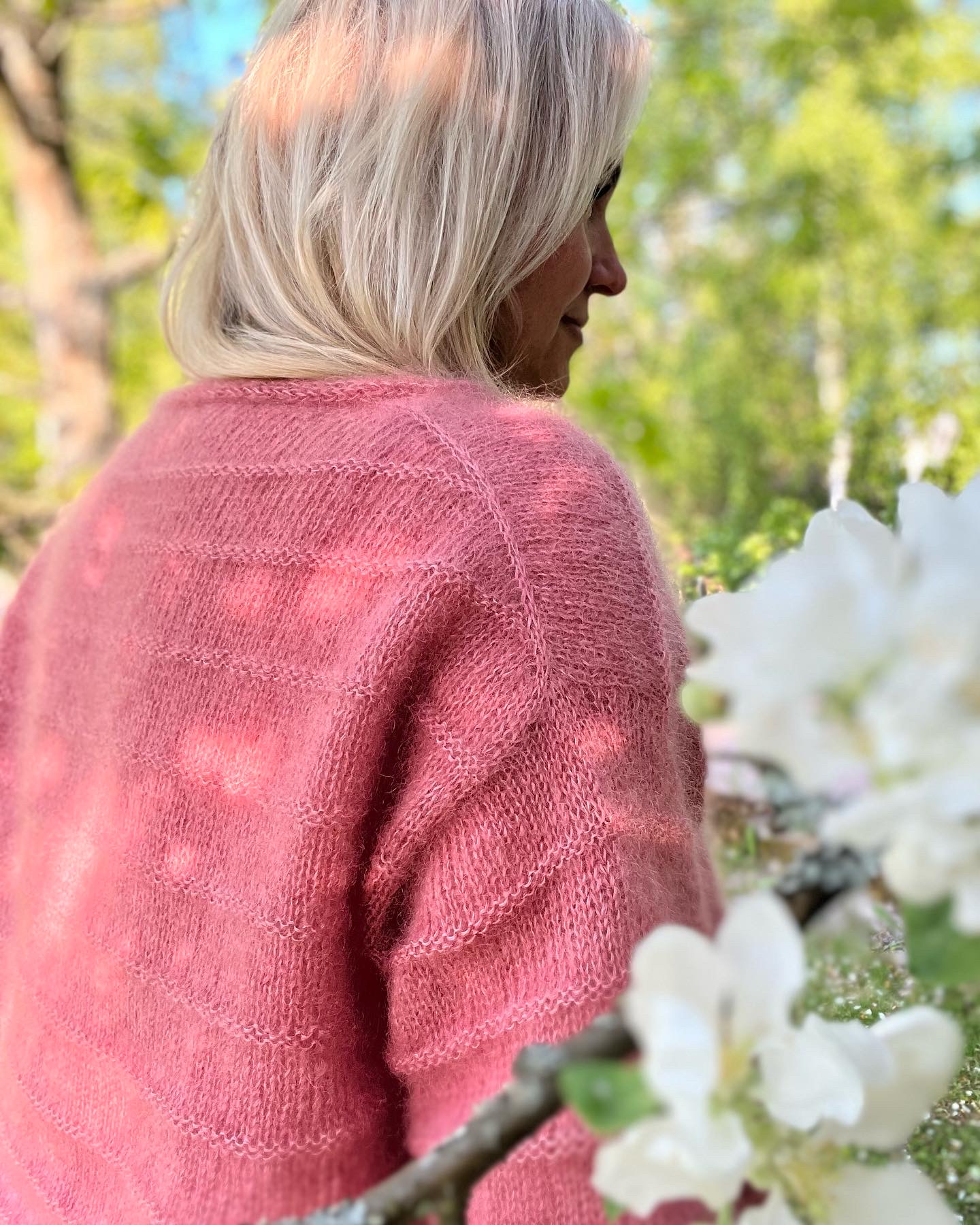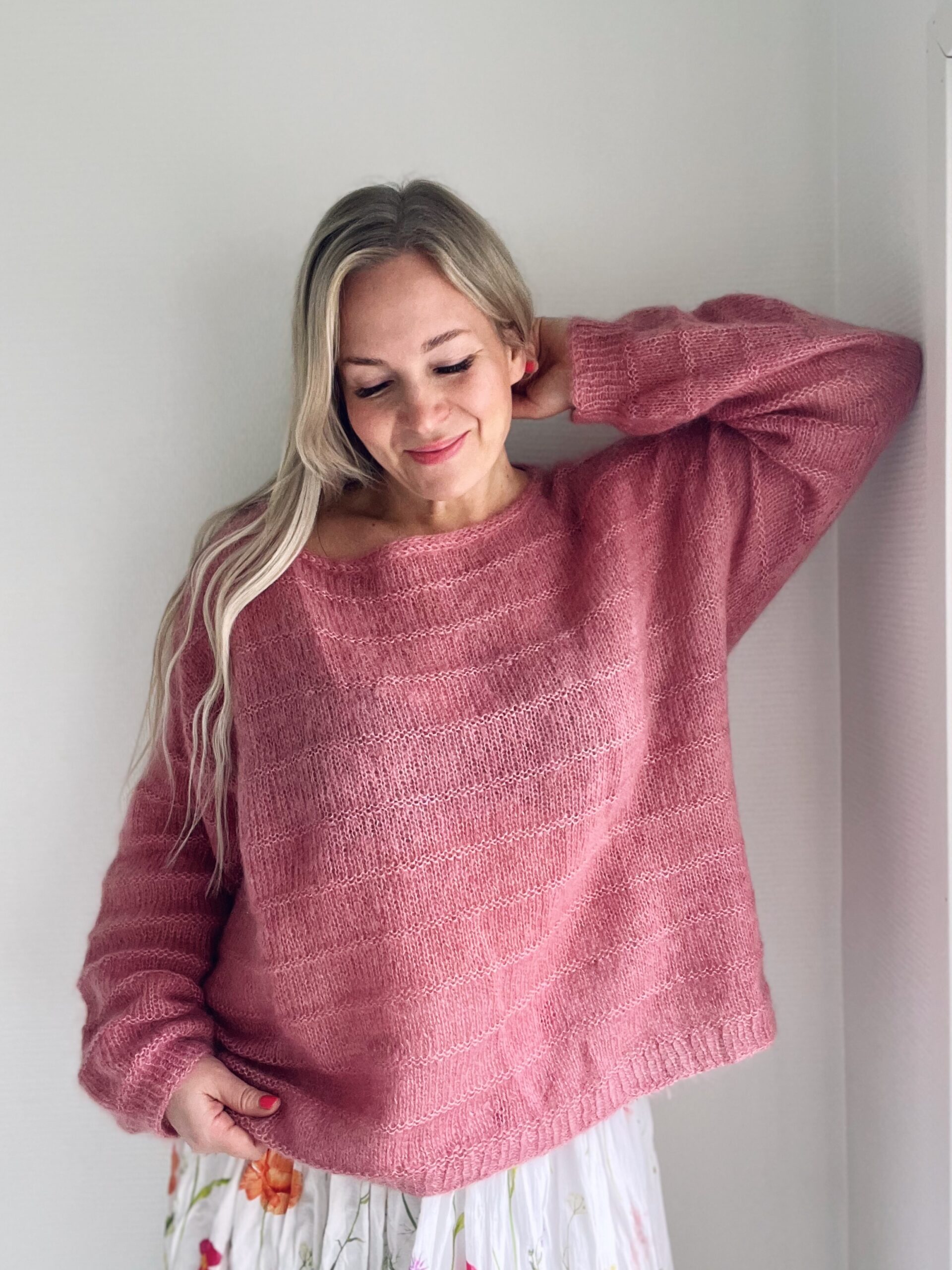 Poolaknits Margo on keveän pehmoinen mohairneule, jossa on simppeli pintakuvio, joka syntyy helposti nurjilla silmukoilla. Kaksinkertaisena neulottava mohair on keveää ja pehmeää ja antaa neuleelle kauniisti laskeutuvan ilmeen. Tämä neule sopii niin arkeen kuin juhlaan ja siinä on kauniit, eleettömät yksityiskohdat.