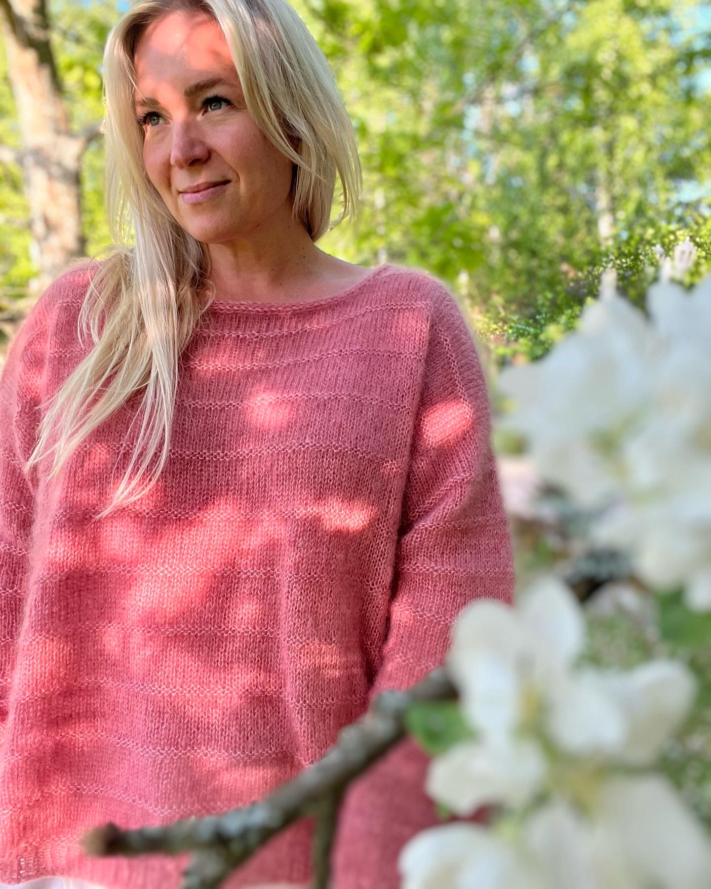 Kuvien neuleessa on käytetty Nurja Mohairia (420 m = 50 g) sävyssä Morganiitti (50 g / 110 m).