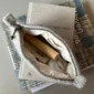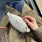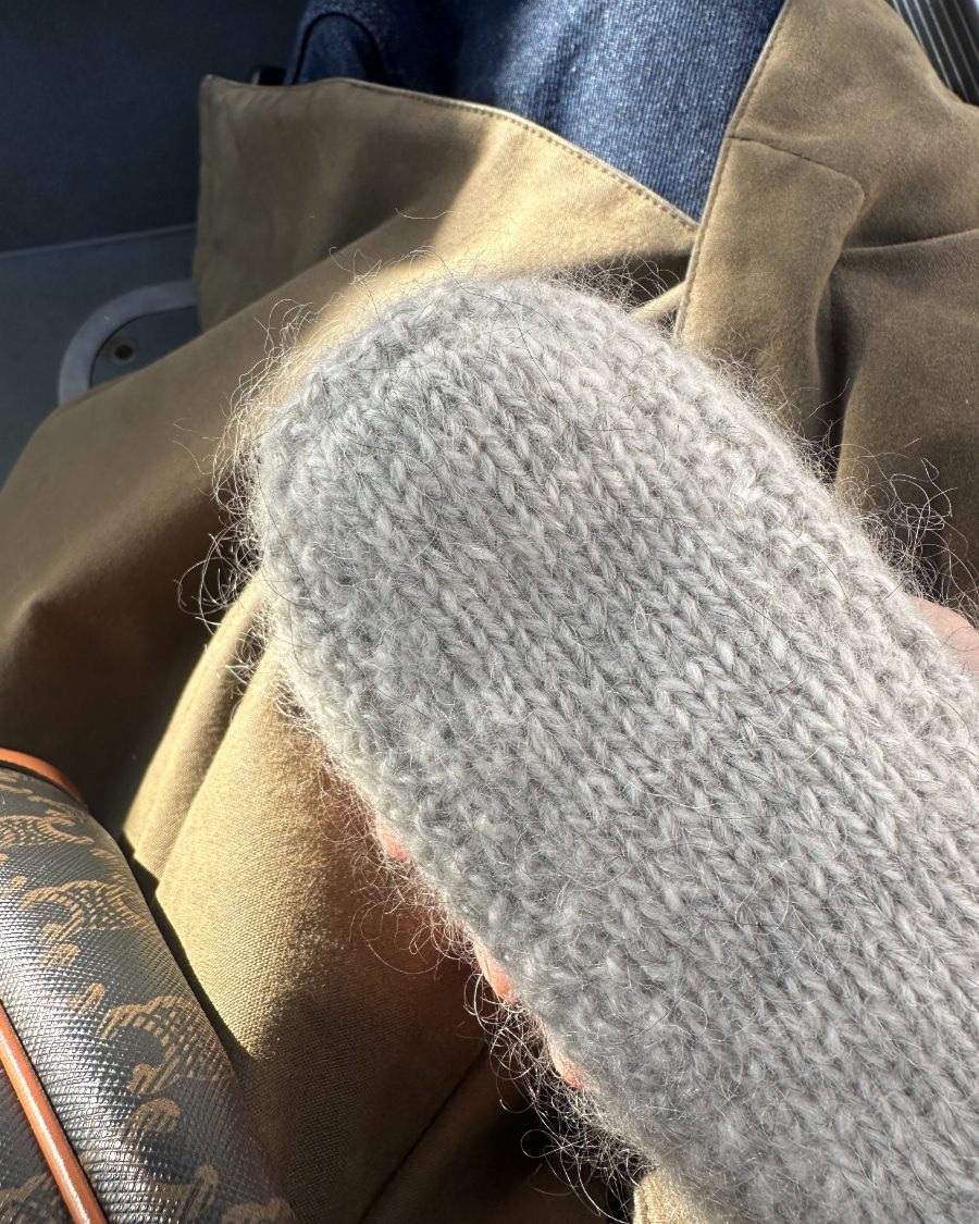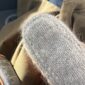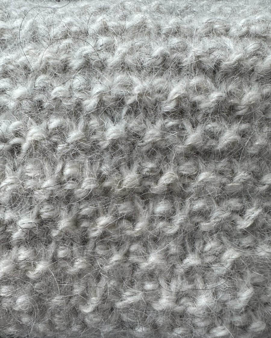 Kuvien harmaa pussukka on neulottu Hjelholts Uldspinderin ja Isagerin langoilla, jotka eivät valitettavasti kuulu valikoimaamme. Lähimpänä valikoimastamme on Sandnes Garn Peer Gynt värissä 1032 Meleerattu vaaleanharmaa.