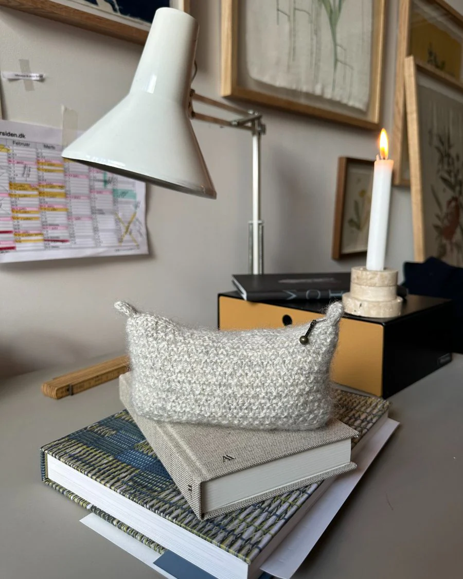 Marie Case on hauska neulottu pussukka. Se aloitetaan pohjasta, joka on tukevaa onteloneuletta. Ohjeessa on kolme eri kokoa ja voit käyttää pussukkaa vaikkapa penaalina tai säilyttää siinä meikkejä tai neuletarvikkeita.