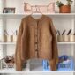Novice Cardigan – Chunky Edition on neulottu Sandnes Garnin Kos värillä 2543 Ruskea sokeri sekä Tynn Silk Mohairin värillä 2543 ruskea sokeri. Värit ovat valitettavasti poistuneet valikoimasta, mutta lähimpänä ovat Kos värissä 2573 Munkki ja Tynn Silk Mohair värissä 3342 mokkamousse.
