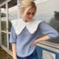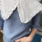 Vaaleansininen pusero on neulottu Isagerin langoilla, jotka eivät valitettavasti kuulu valikoimaamme. Lähimpänä valikoimastamme on Sandnes Garn Tynn Silk Mohair värissä 6042 tumma taivaansininen.