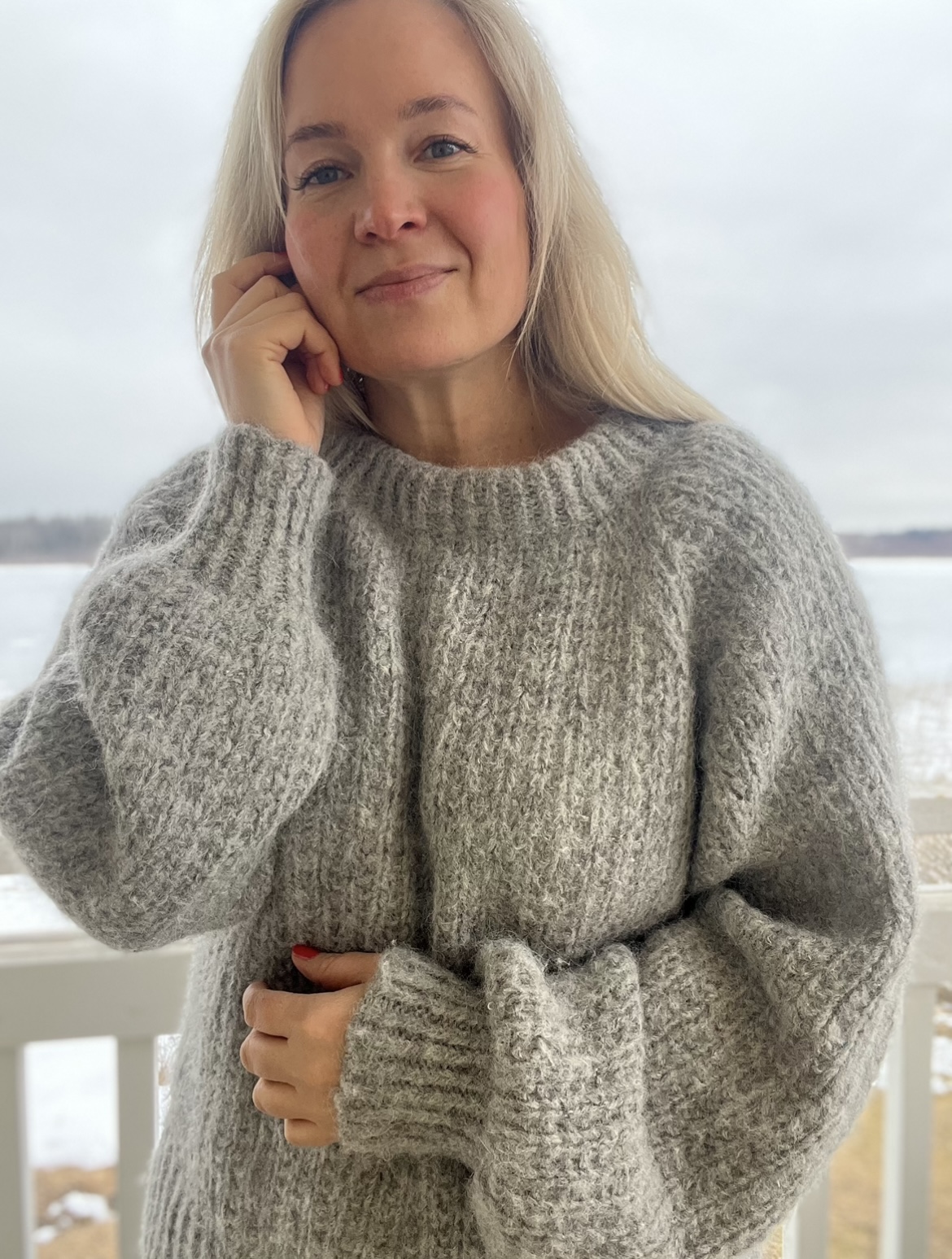 Poolaknits Pepper on muhkea ja helppo raglan-neule, jossa on väljä mitoitus ja kaunis pinta rikottua joustinneuletta, joka syntyy vähemmän neuloneeltakin helposti. Pepper neulotaan ylhäältä alas ja siinä helmassa halkiot sekä napakat resorit hihoissa kuromassa väljiä hihoja hieman pussimaisesti kasaan.