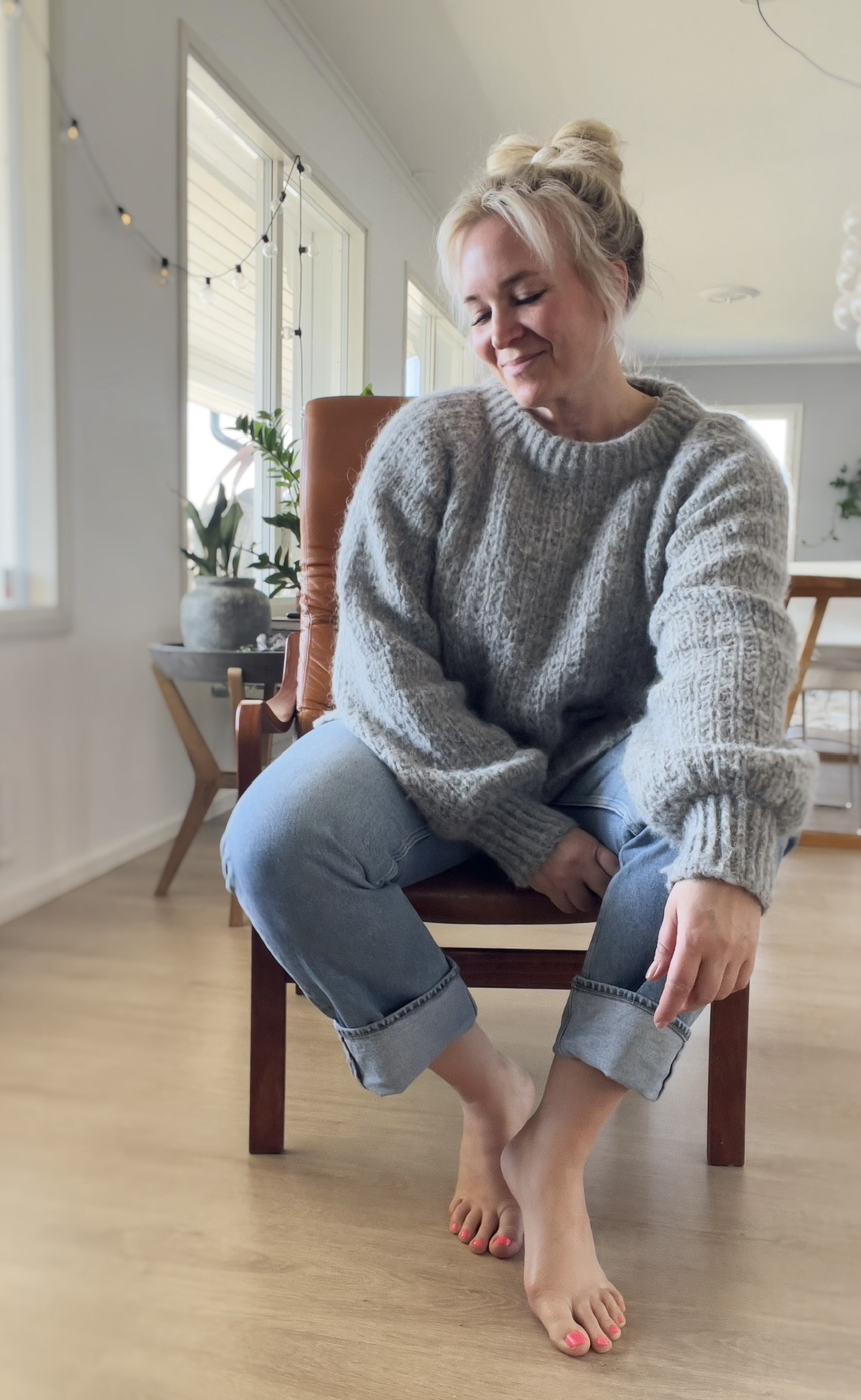 Kuvien neuleessa on käytetty Sadnes Garnin Borstet Alpakkaa sävyssä 1042.