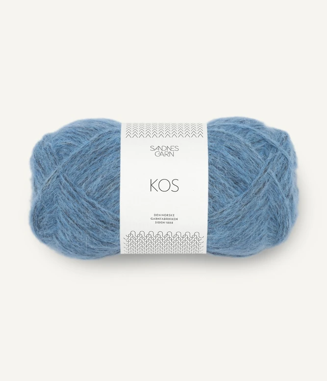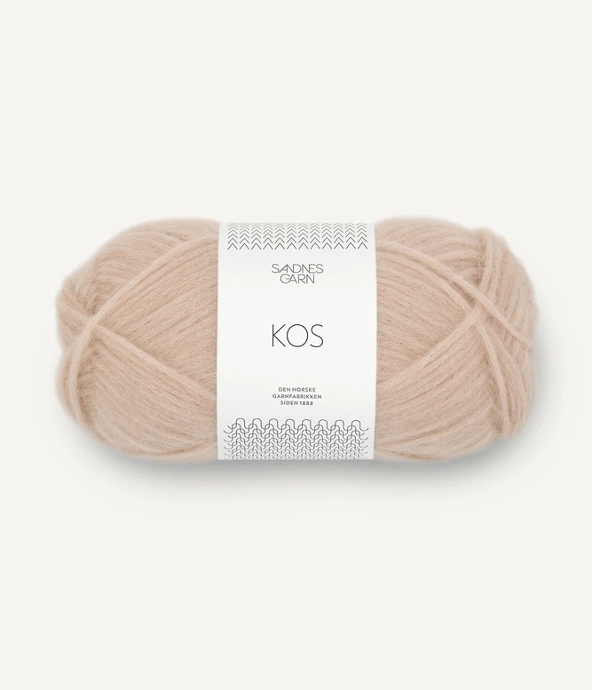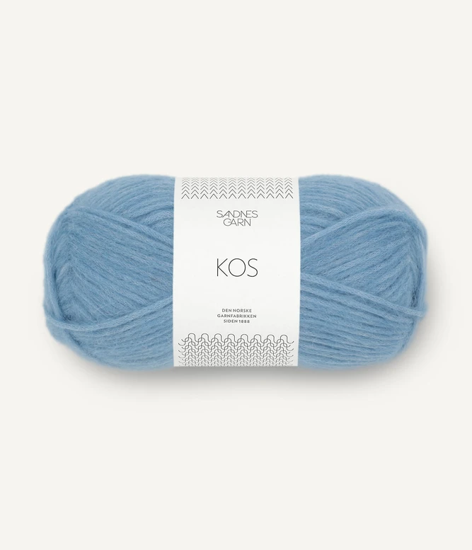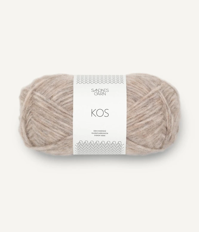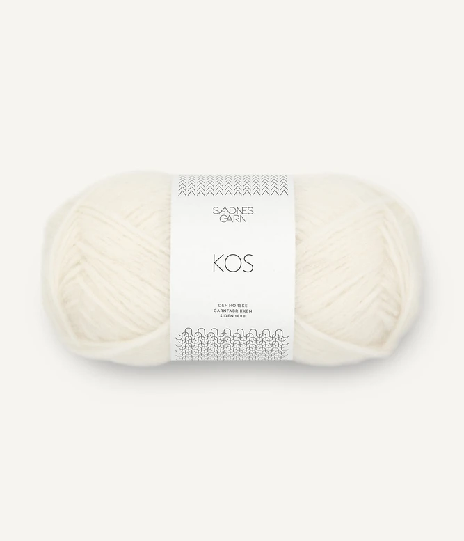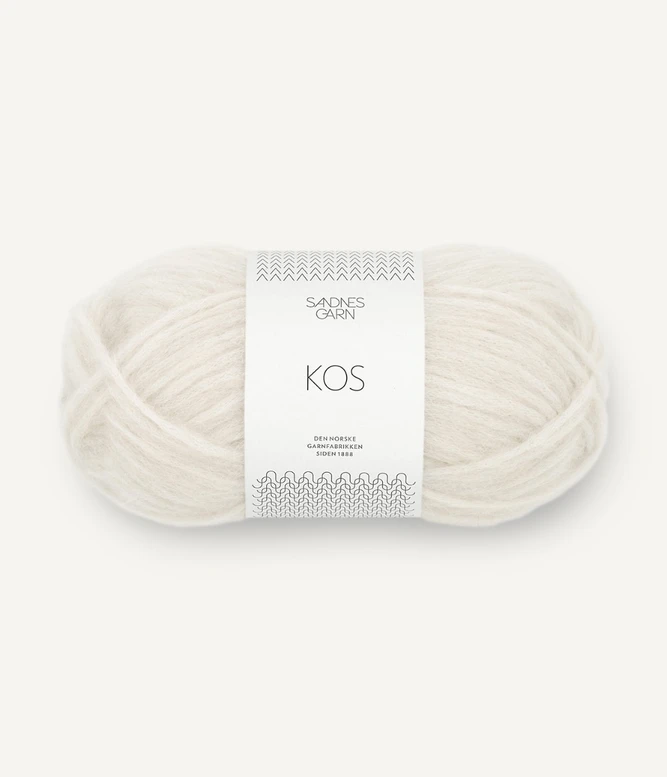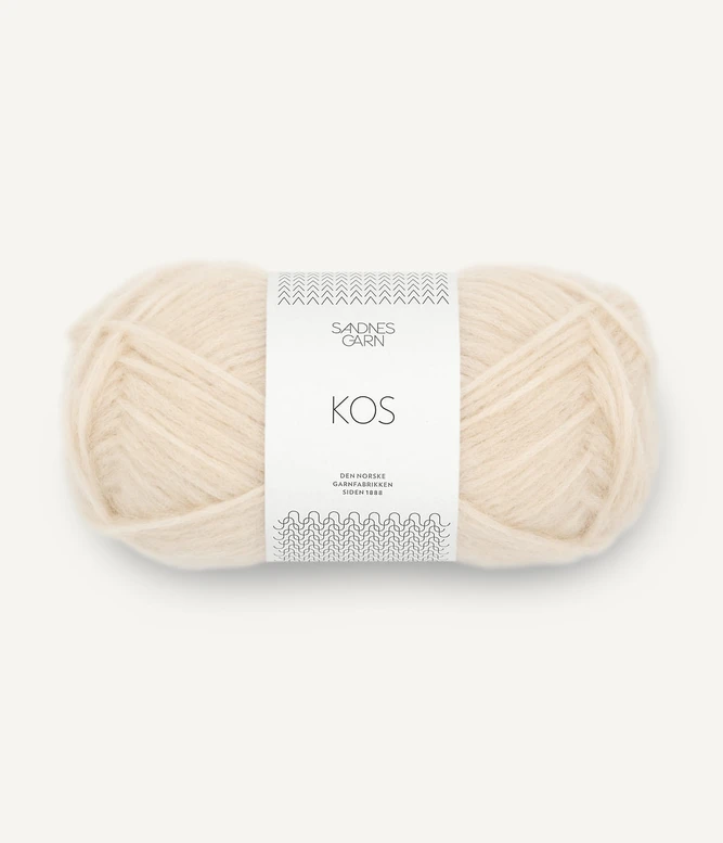 Sandnes Garn Kos on paksu, mutta todella kevyt ja hieman pörröinen puhallettu alpakkasekoitelanka.