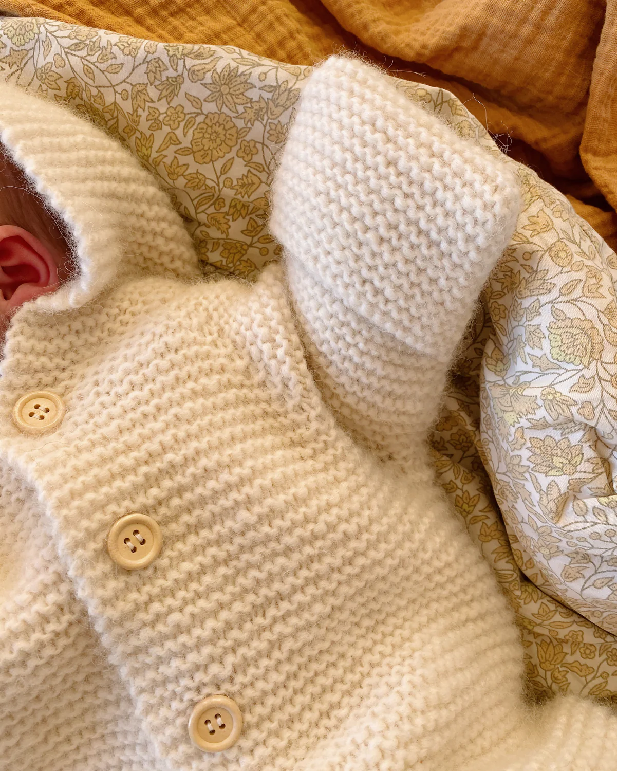 Selma’s Sleep Suit on super pehmeä ja lämpöinen vauvan neulehaalari. Haalari on väljä ja siinä on käytännöllinen huppu ja taitettavat hihat sekä lahkeet, joten se on täydellinen vaate esimerkiksi syksyn vaunulenkeille tai talvella autoiluun.