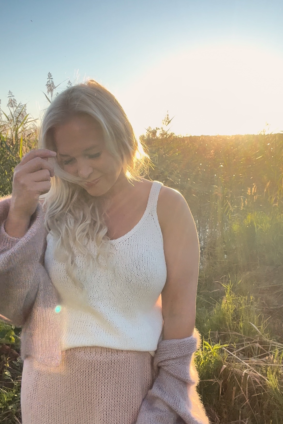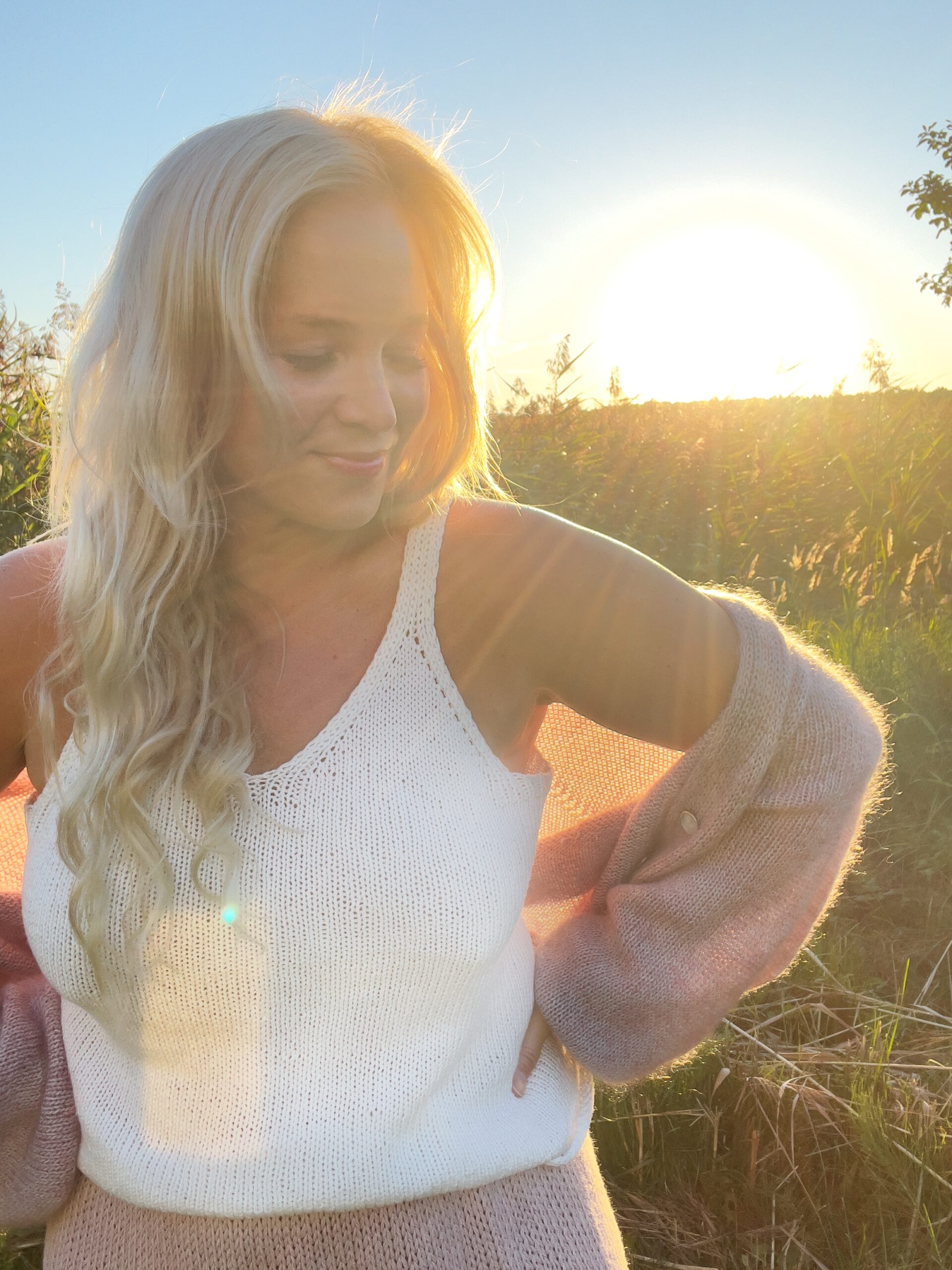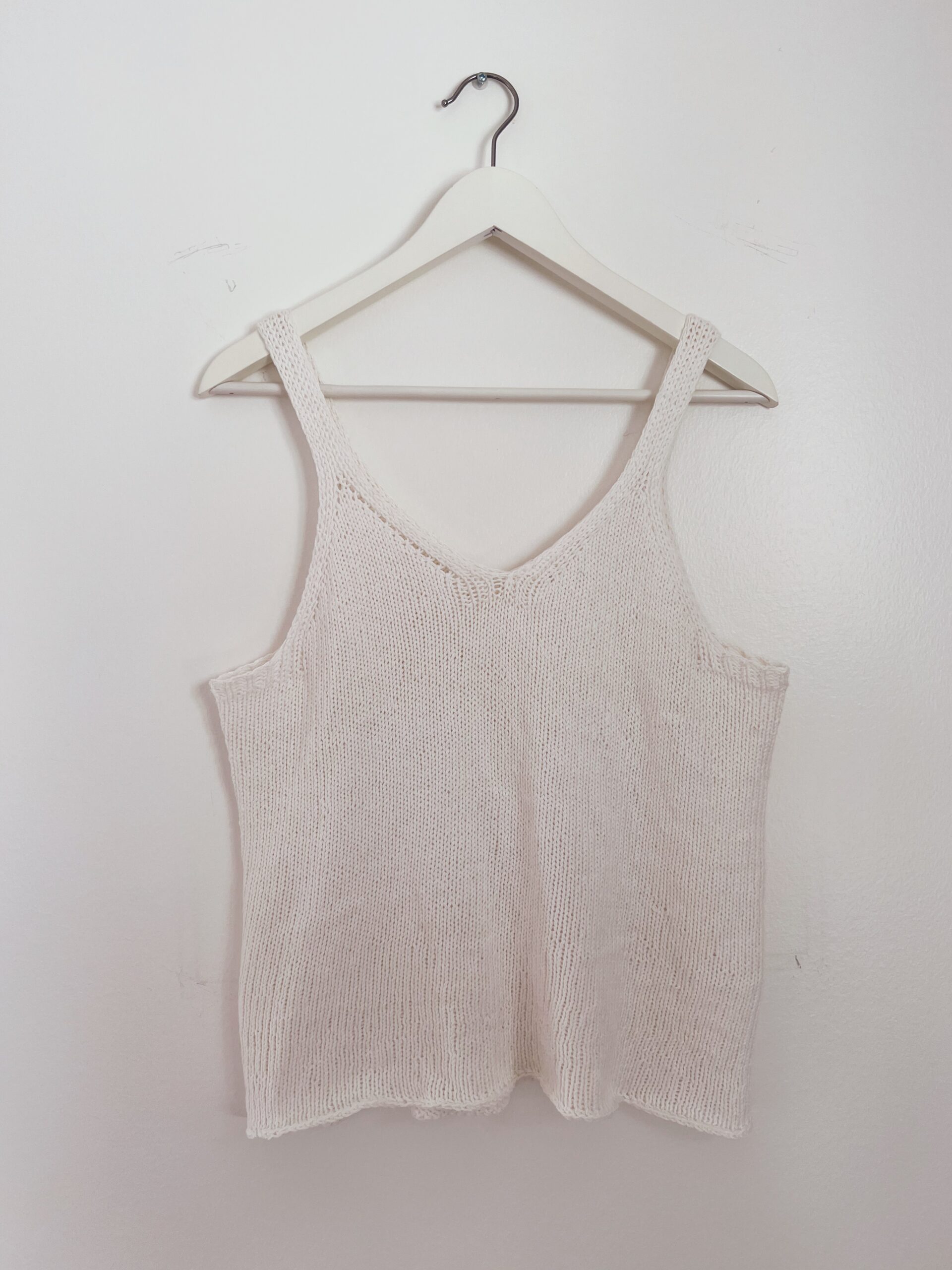 Simple-neuletoppi neulotaan ylhäältä alas niin, että ensin neulotaan molemmat olkaimet erikseen, jonka jälkeen työ yhdistetään ja neulotaan suljettuna neuleena alas helmaan. Näin voit itse määritellä topille sopivan pituuden. Topin kainalot laskeutuvat alas ja yläosan reunoihin neulotaan resorilla kaunis viimeistely. Ohjeessa helma on neulottu ilman resoria, mutta voit valita neuloa helman myös resorilla.