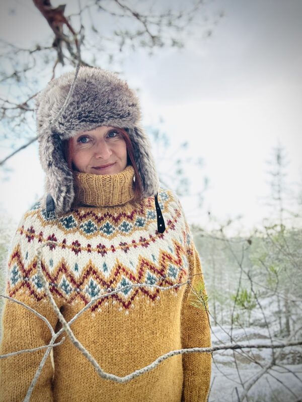 Vihreä Sipoonkorpi Bulky-pusero on neulottu Álafosslopi-langan väreillä 1230 Ylämaanvihreä, 0051 valkoinen, 9965 keltavihreä, 9967 sinivihreä, 9427 ruosteenruskea. Keltainen pusero on neulottu Álafosslopi-langan 9964 kullankeltainen, 0051 valkoinen, 9967 sinivihreä, 0057 harmaa ja 1409 granaattiomena.Sipoonkorpi Bulky-pusero on neulottu Álafosslopi-langan väreillä 1230 Ylämaanvihreä, 0051 valkoinen, 9965 keltavihreä, 9967 sinivihreä, 9427 ruosteenruskea.