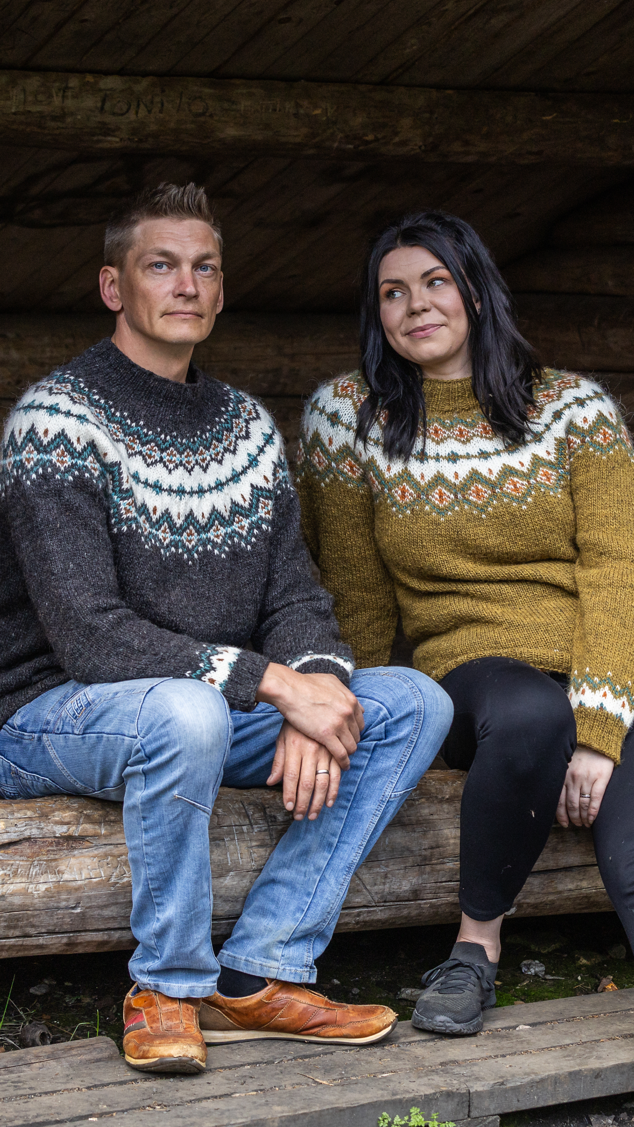 Huomaathan, että saadaksesi kirjoneuleessa saman tiheyden kuin sileässä neuleessa, voit joutua neulomaan sitä 0,5-1 mm isommilla puikoilla. Tämän vuoksi mallitilkku kannattaa neuloa sekä kirjoneuleena että sileänä neuleena ennenkuin aloitat puseron neulomisen.