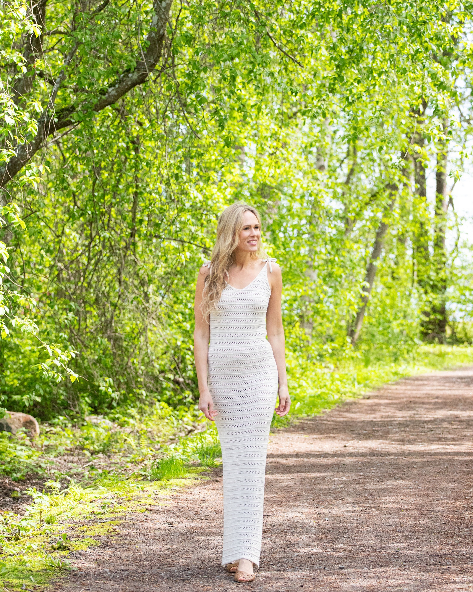 True Love -neulemekko vie boheemiin kesätunnelmaan herkällä pitsikuviollaan. Nilkkapituisen helman viimeistelevät korkeat halkiot helman molemmin puolin. V-pääntie ja solmittavat nyöriolkaimet tekevät neulemekon pääntiestä todellisen katseenkääntäjän. True Love -neulemekko on täydellinen kesämekko, jonka saa asustettua jokaiseen tilaisuuteen sopivaksi arjesta juhlaan. Tässä neulemekossa voit tuntea itsesi tyylikkääksi. True Love -neulemekko kestää aikaa säilyen vuodesta toiseen kesäneulevaatteiden kuningattarena.