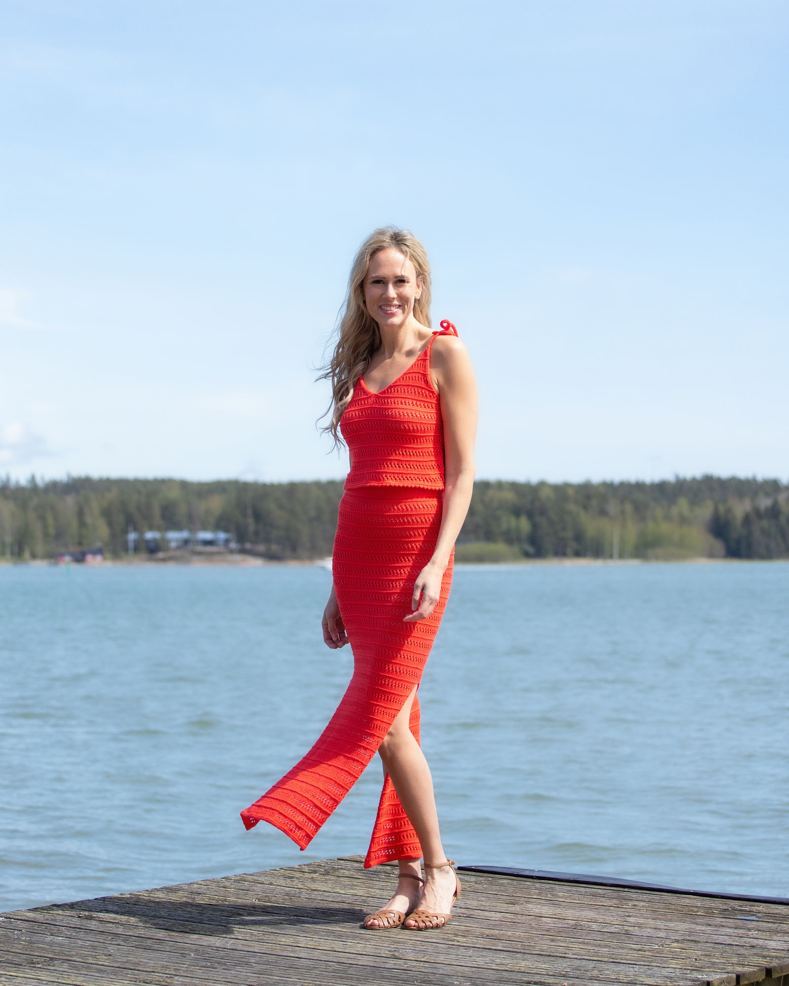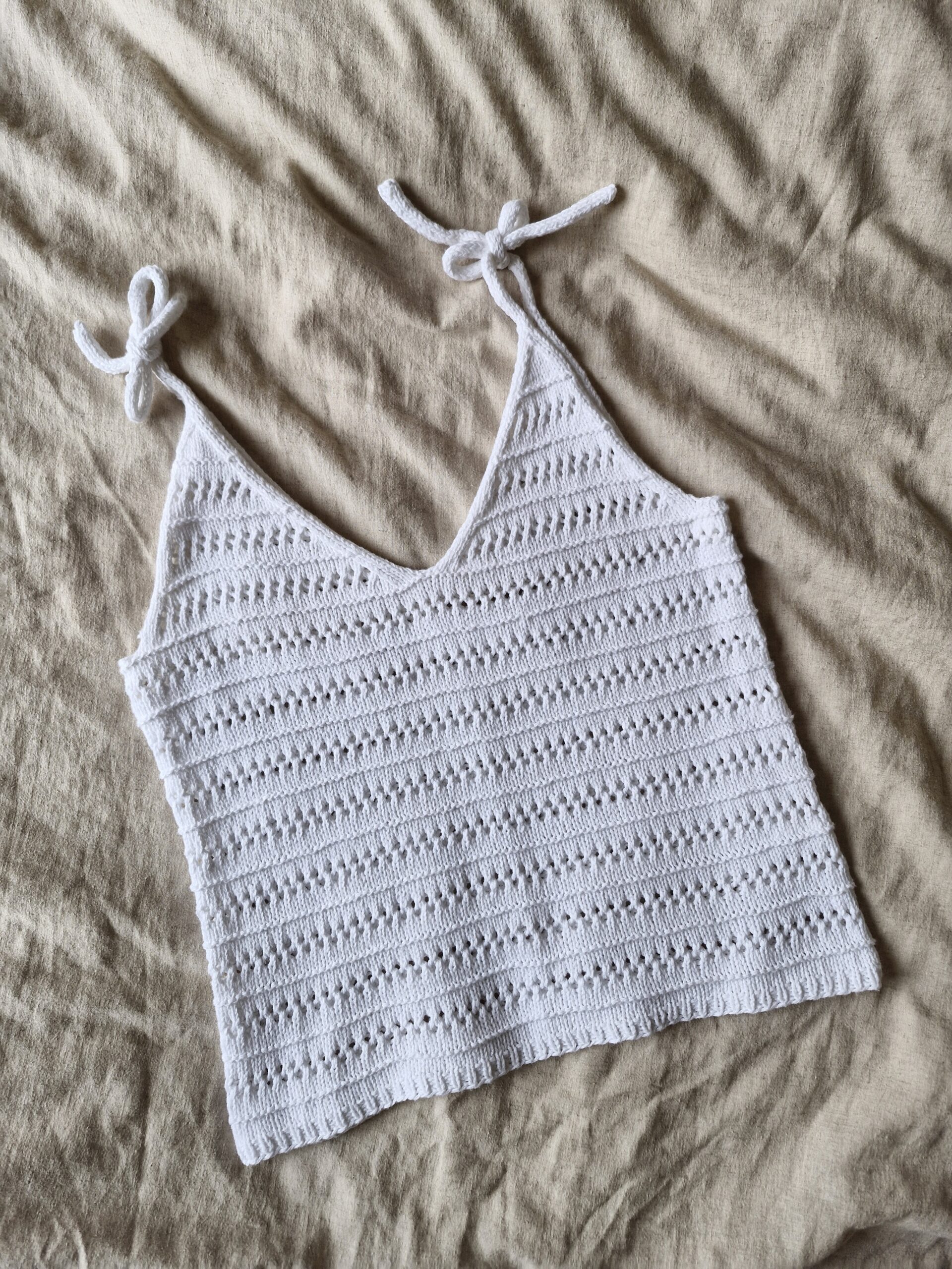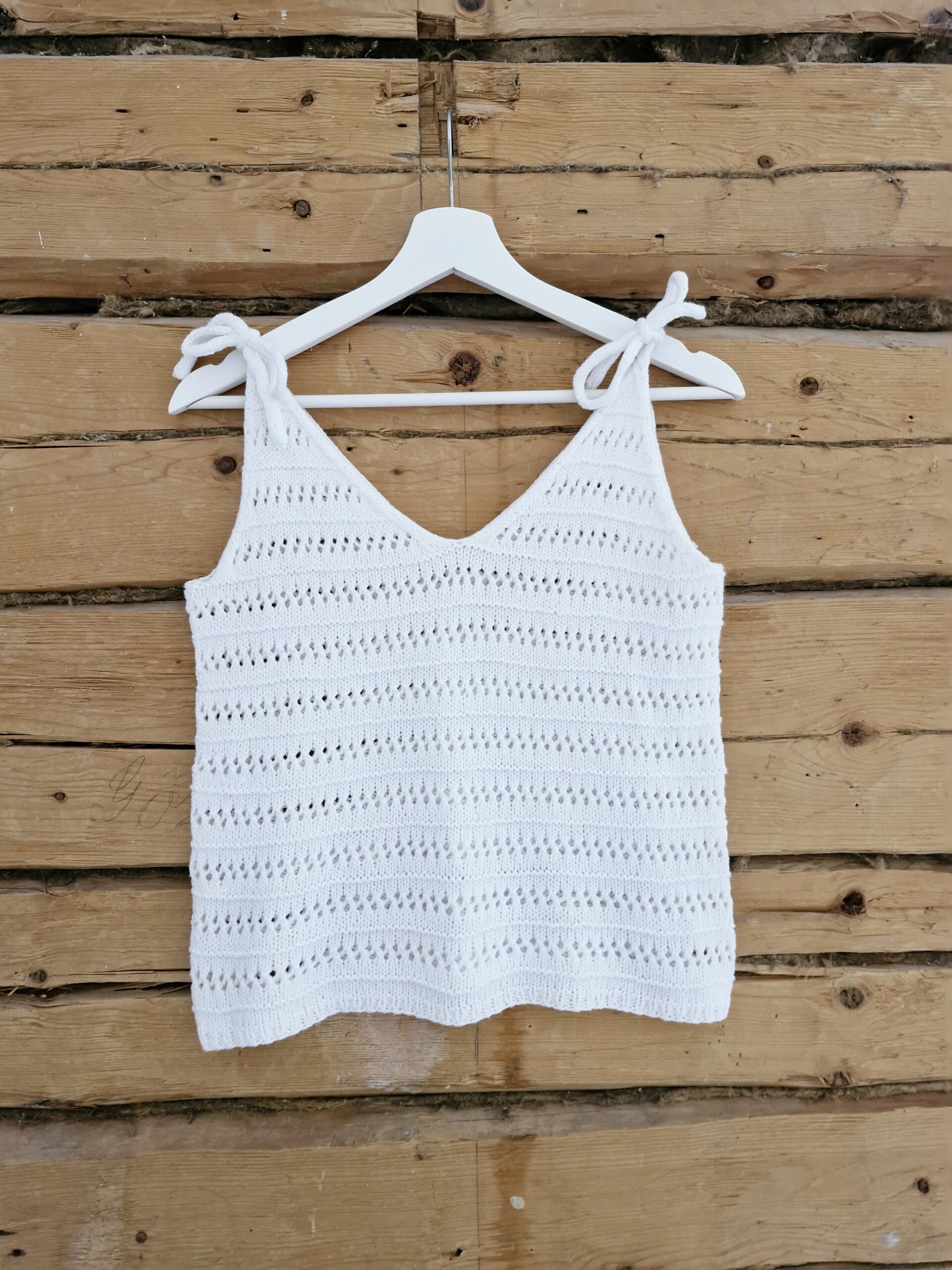 True Love -neuletoppi vie boheemiin kesätunnelmaan herkällä pitsikuviollaan. V-pääntie ja solmittavat nyöriolkaimet tekevät topista todellisen katseenkääntäjän. True Love – neuletoppi sopii kauniisti niin shortsien, housujen kuin hameen pariksi. Tässä neuletopissa voit tuntea itsesi tyylikkääksi arjesta juhlaan.
