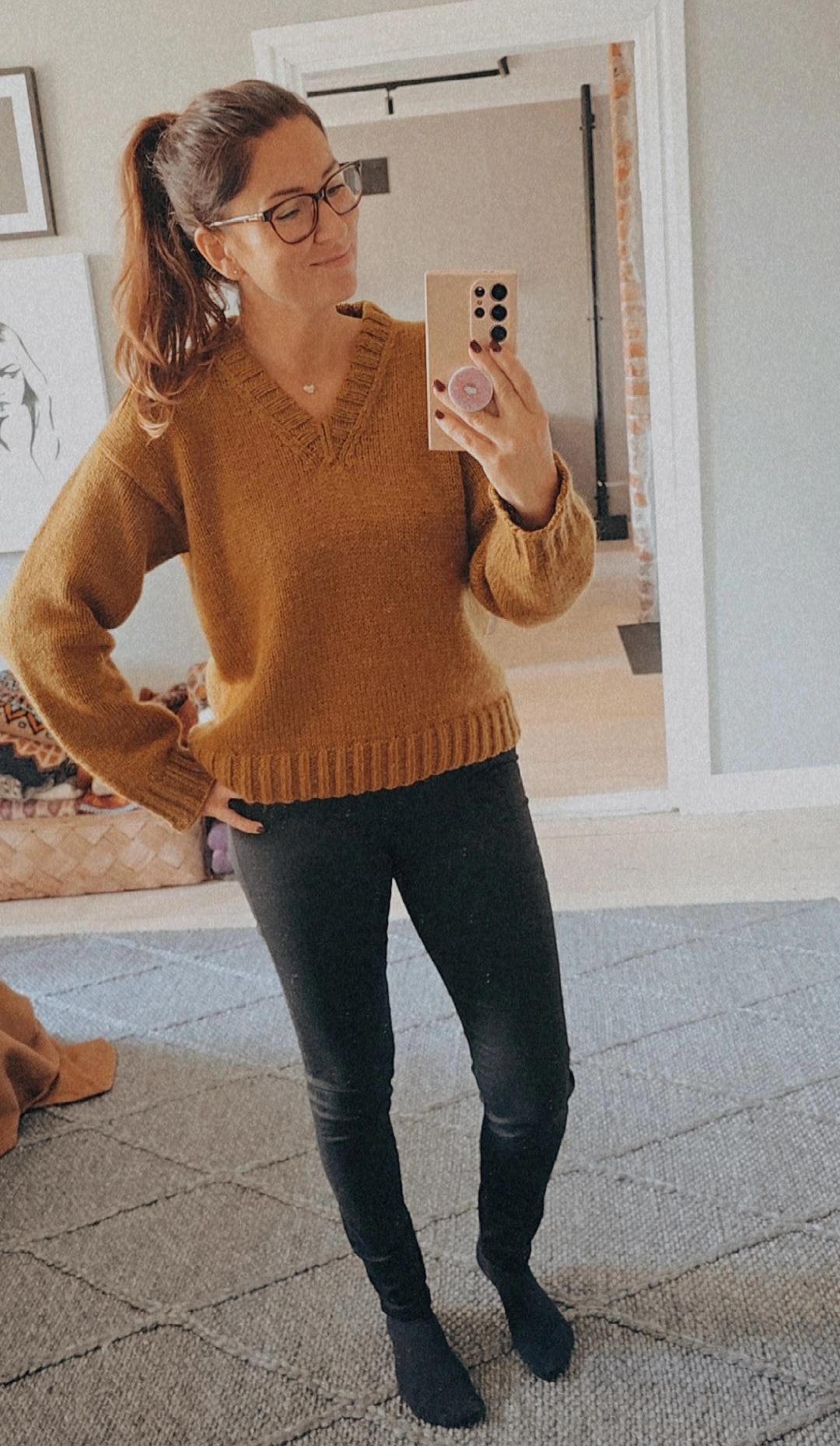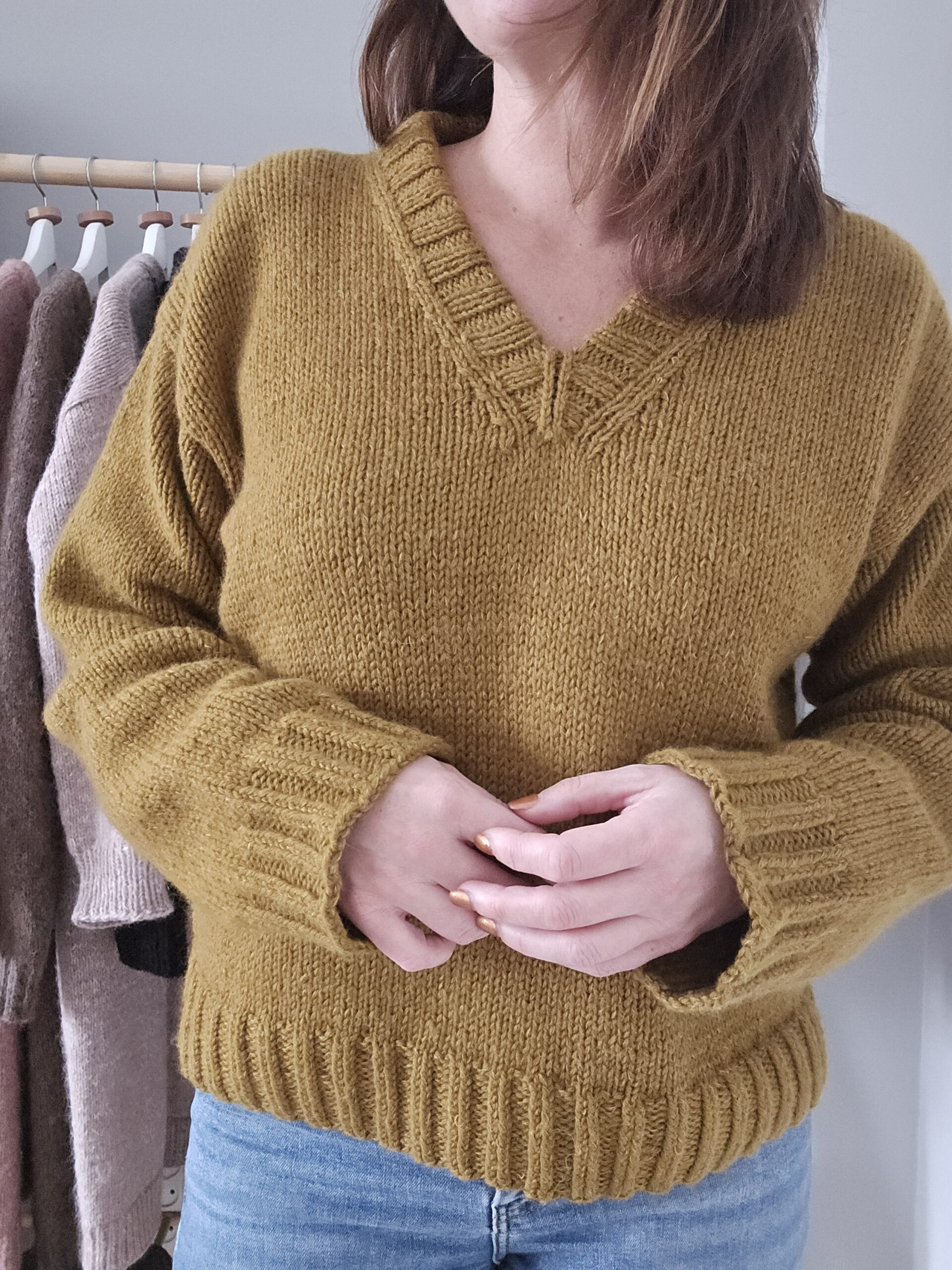 Kuvien mallikappale on neulottu Knitting for Oliven Heavy Merinolla värissä Dark Ocher sekä Soft Silk Mohair värissä Dark Mustard.
